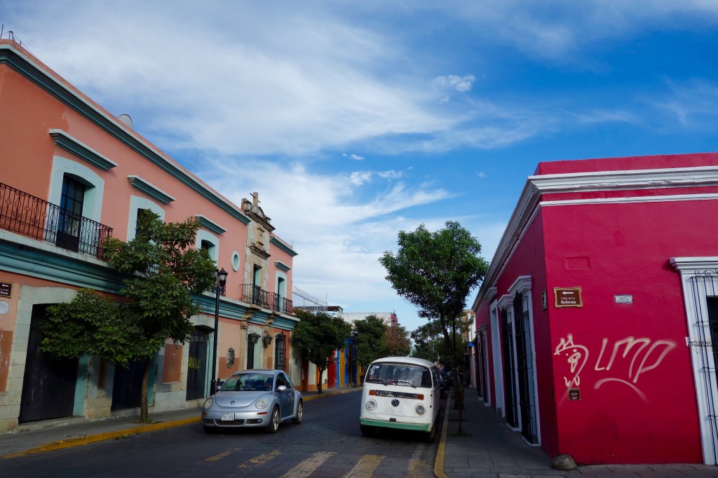 Oaxaca City is so beautiful. Alongside the physical beauty–of bountiful blue skies and bougainvilleas, cobblestones and colonial buildings–there is a strong indigenous presence in the city’s culture and people. Then add in the stellar street food and markets, tacos and tlayudas–and Oaxaca takes it another level.