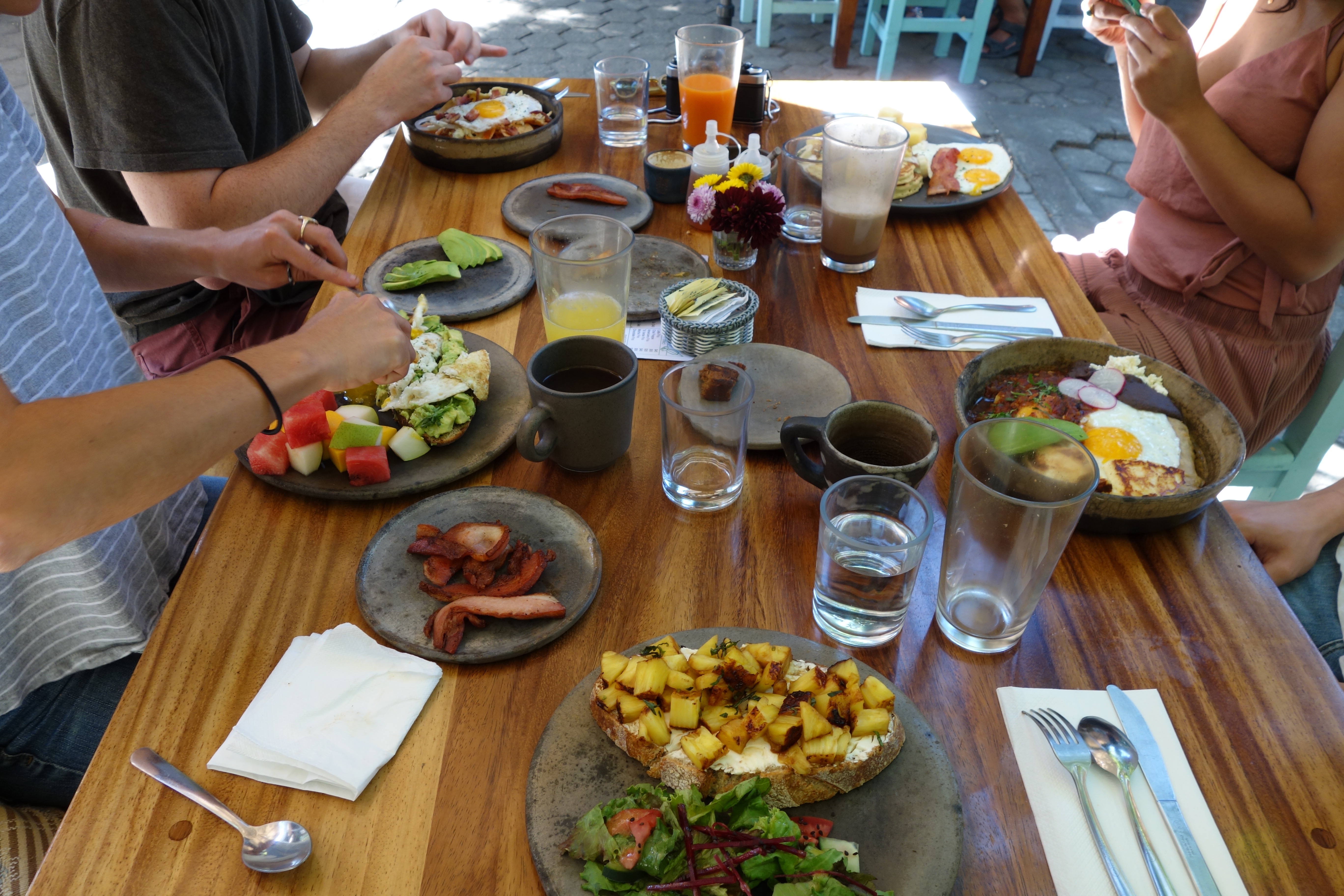 Chepiche – beautiful morning spot in a tree-filled courtyard in Xochimilcho. They have great options for every kind of brunch person: there’s pancakes with tropical fruit, challah french toast, and avocado toast with salad. For the heartier breakfast fans, there’s about five or six Mexican brunch options, from chilaquiles to huevos rancheros. Gets rightfully busy, even on weekdays. Pictured below (top right).